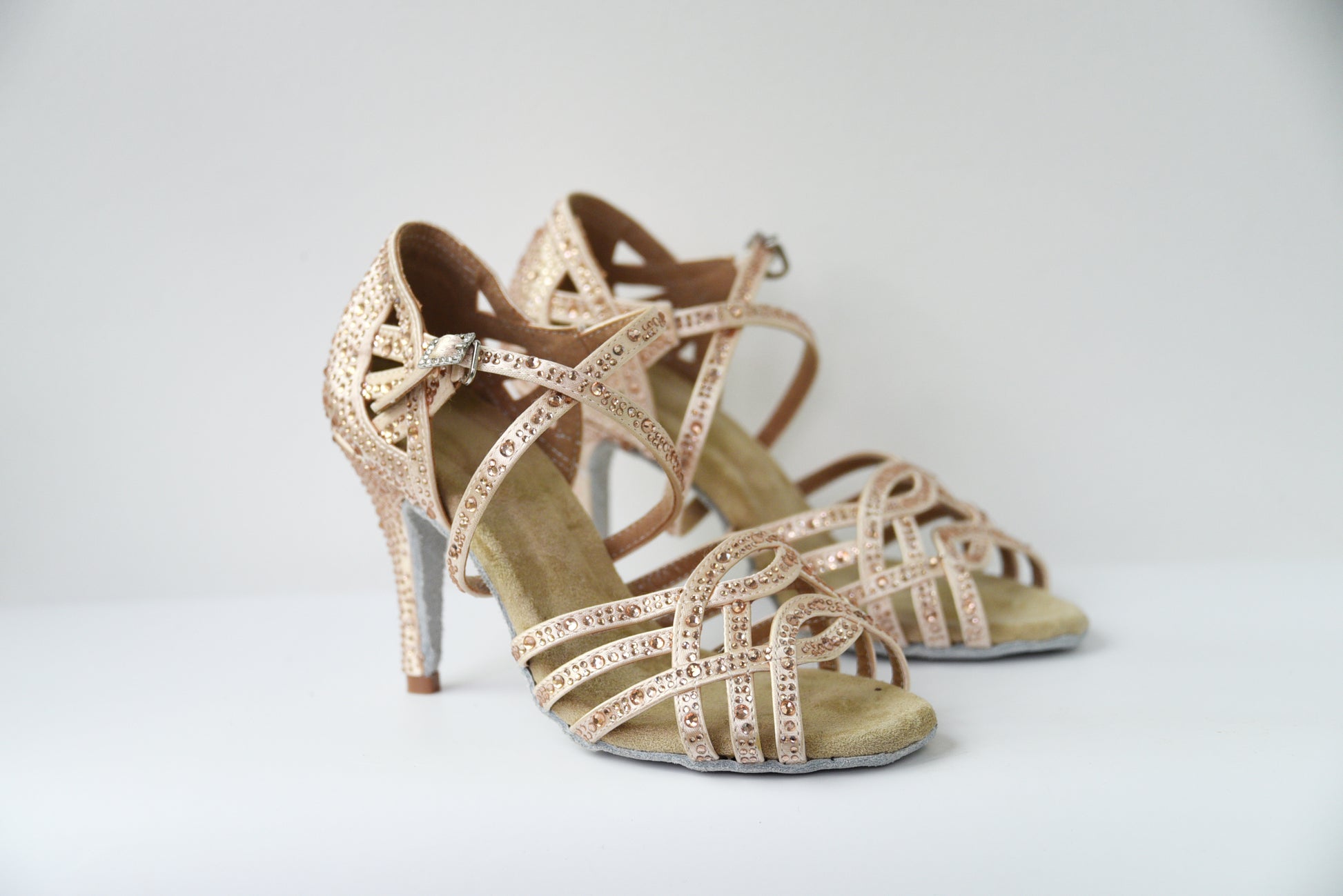 These Clover dance shoes boast a neutral look for maximum versatility. Rhinestones cover the crisscross design that wraps around the foot for a flattering fit. Flexible straps at the ankle allow easy wear and slip-on comfort. Internal cushioned insoles provide maximum support.